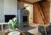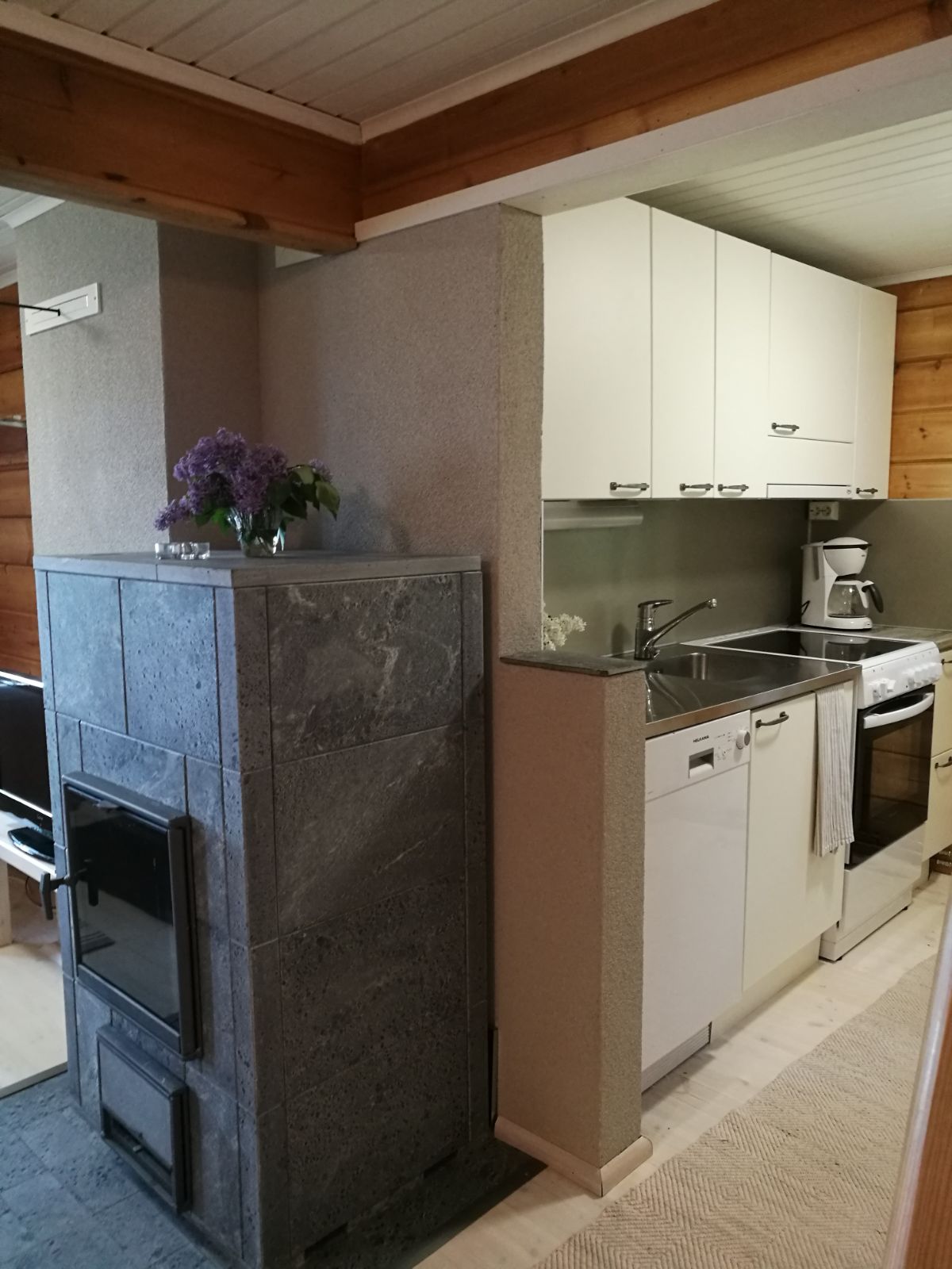 - living room and soapstone fireplace