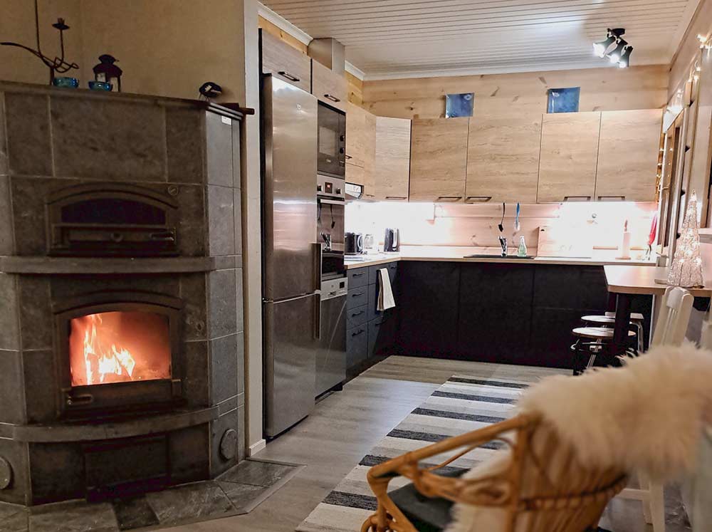 - Avara olohuone, jossa takkaleivinuuni